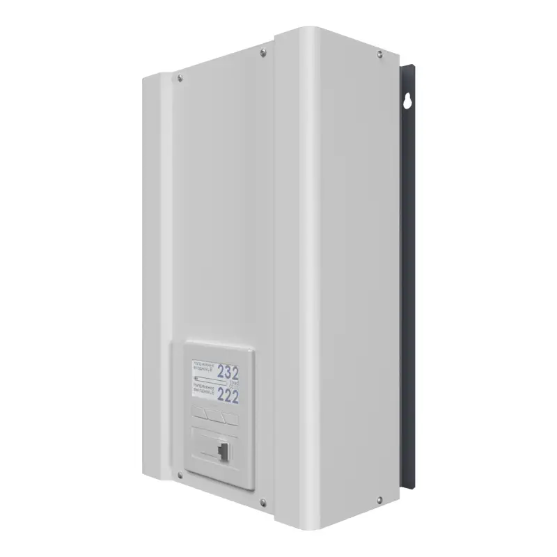 Стабилизатор рассчитан на номинальную мощность до 9 кВА, что делает его подходящим для питания как отдельных мощных приборов, так и целых групп оборудования в жилых домах, офисах или производственных помещениях. Рабочий ток достигает 40 ампер, что также говорит о его способности выдерживать значительные нагрузки. Устройство использует тиристорный тип ключей, что обеспечивает бесконтактное переключение и, как следствие, повышенную надёжность и долговечность узлов стабилизации. Электронное управление позволяет добиться высокой точности стабилизации — отклонение выходного напряжения в рабочем диапазоне составляет всего 2,7%, что полностью исключает вредное воздействие скачков на технику.